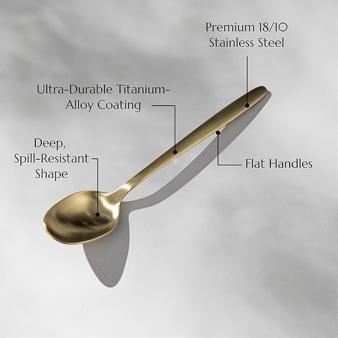 JazzUpCo Tia Flatware non toxic 18/10 stainless steel dishwasher safe (Matte Gold, 16 Person Set (80 Pieces))