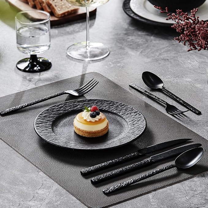 - BLACK POLISHED FINISH- Using black vacuum coating technology to add a food-grade black coating to the stainless steel surface, the tableware exudes luxury everywhere. These flatware strike a note of modern elegance in streamlined metal and matte-black color.
