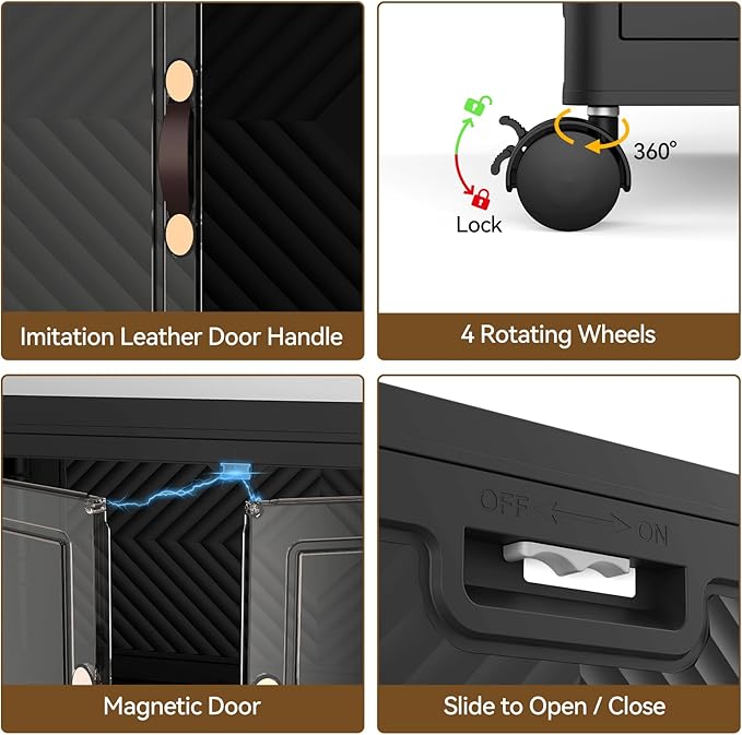 - 【Smooth Rolling Convenience】Utilise our four wheels (2 regular + 2 wheels with brake pads) - glide your storage bin easily over any floor surface. Ultra-quiet wheels ensure seamless movement without scratches or noise, while a secure locking mechanism keeps the stacking storage bin firmly in place during storage.
