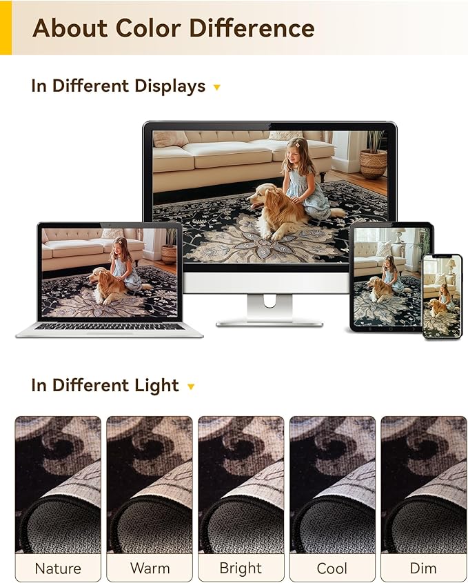 - About Crease: you may notice some folds on your rug upon receiving it. These are just from the way it was packaged during shipping. With regular use, the creases should naturally disappear within a few days. However, if you want to speed up the process, you can try folding the rug in the opposite direction or placing a heavy object on top of the creases to help flatten them out faster.
