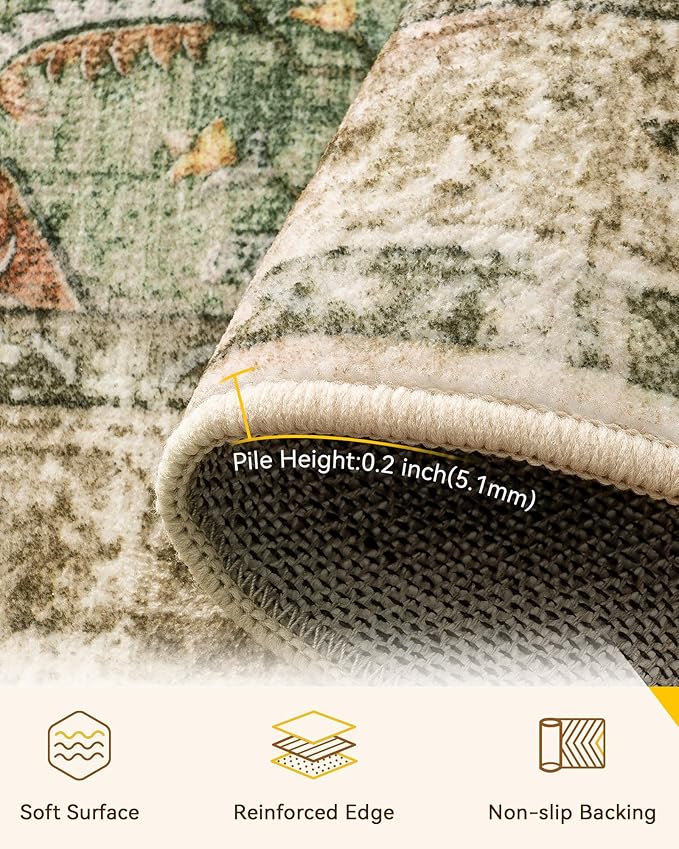 - Soft Surface and Non-slip Backing: this area rug is made of low-pile soft material which feels great underfoot. With its low pile, the fibers are short and tightly packed together, creating a smooth and even surface. Your pets gonna love it. And the non-slip backing makes the rug stays in place.