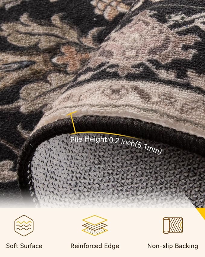 - Soft Surface and Non-slip Backing: this area rug is made of low-pile soft material which feels great underfoot. With its low pile, the fibers are short and tightly packed together, creating a smooth and even surface. Your pets gonna love it. And the non-slip backing makes the rug stays in place.