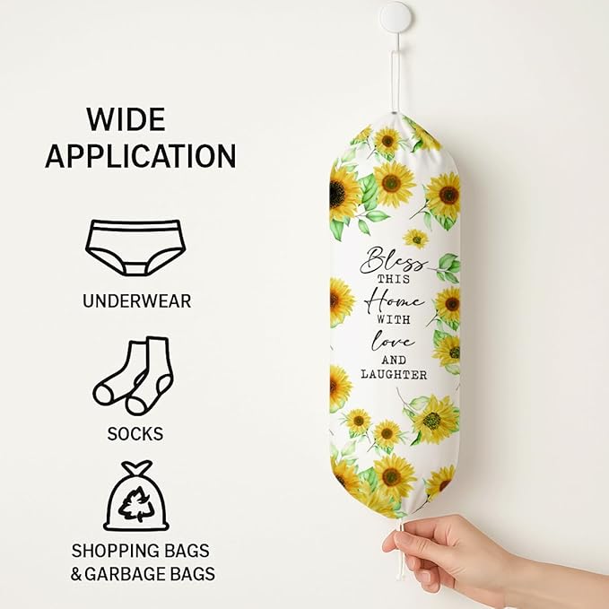 Sunflower Plastic Bag Holder, Bless This Home with Love And Laughter Plastic Bag Holder, Christian Inspirational Gift for Women Plastics Bags Holders with Bible Verses, Reusable Trash Bags Organizer