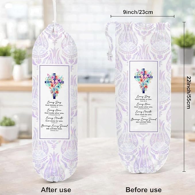 Plastic Bag Holder, Bible Verse Plastic Bag Holder for Christian Decor, Trash Sack for Kitchen Decor, Wall Mount Plastics Bags Storage Container Dispenser, Kitchen Gift to Women Family Friends
