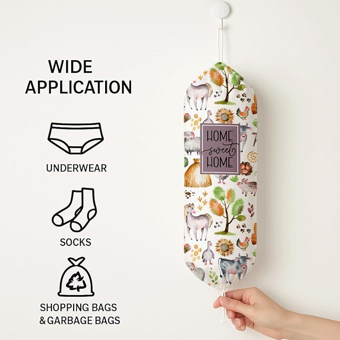 Plastic Bag Holder, Home Sweet Home Plastic Bag Holder, Farm Animals Bags Holders for Grocery Bags Groceries Store, Reusable Plastics Sack Storage Dispenser for Kitchen Decor