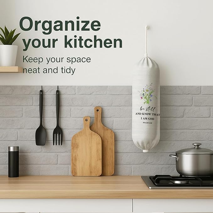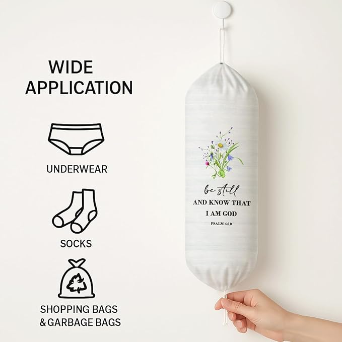 Plastic Bag Holder, Be Still And Know That I Am God Plastic Bag Holder Christian Decor, Reusable Hanging Grocery Bags Organizer, Wall Mount Trash Bags Storage Container Dispensers