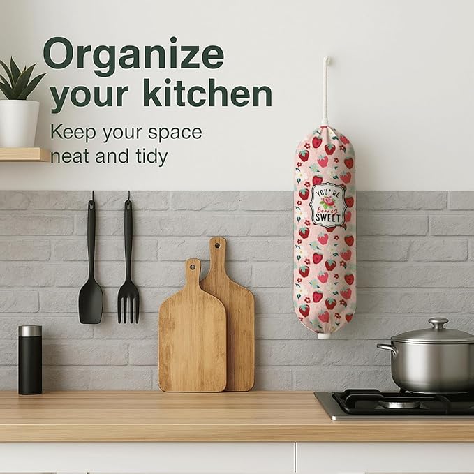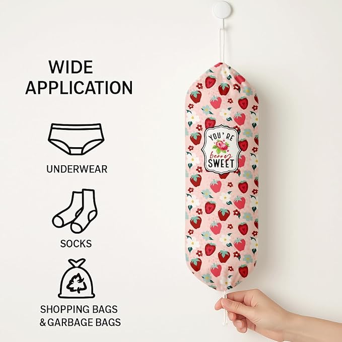 Plastic Bag Holder, Pink Strawberry Plastic Bag Holder, Bags Holders for Plastics Bags Groceries Store, Reusable Trash Sack Storage Dispenser, Kitchen Gifts For Women Family Friends