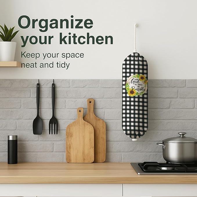 Plastic Bag Holder, with God All Things Are Possible Plastic Bag Holder, Reusable Trash Bags Organizer Home Decor, Christian Inspirational Gift for Women Plastics Bags Holders with Bible Verse