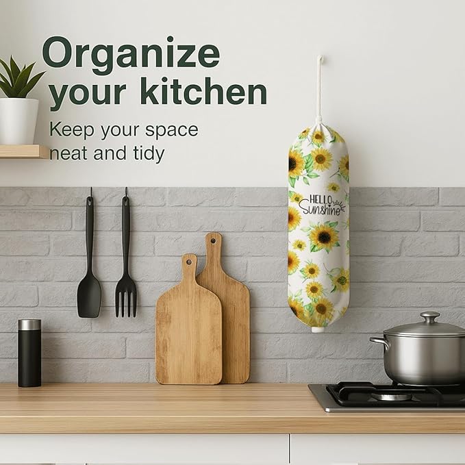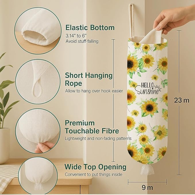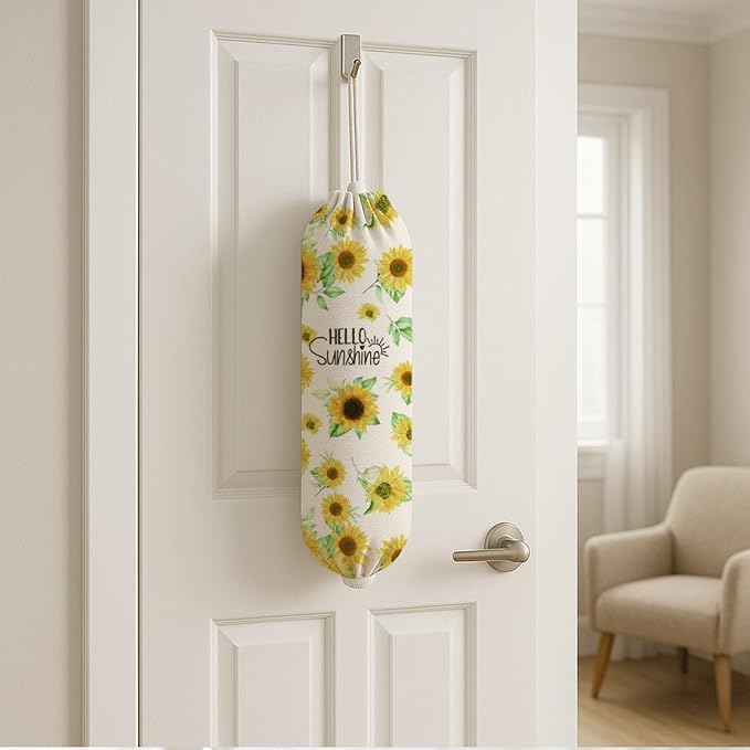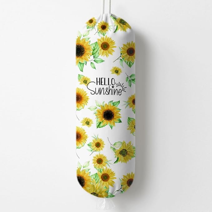 Sunflower Plastic Bag Holder, Hello Sunshine Plastic Bag Holder for Kitchen Essentials, Reusable Hanging Plastics Sack Dispenser, Floral Trash Sack Storage Dispenser for Home Decor