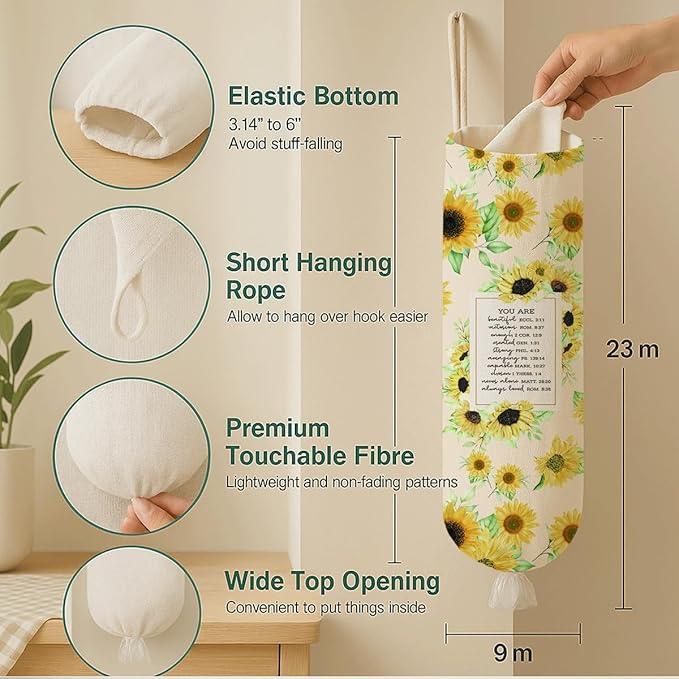 Plastic Bag Holder, Sunflowers Plastic Bag Holder with Bible Verse, Reusable Hanging Grocery Bags Organizer, Inspirational Religious Gifts for Women Friends and Family