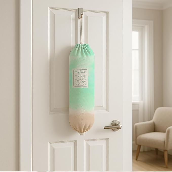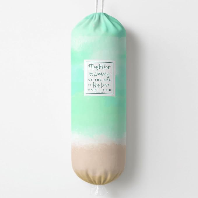 Plastic Bag Holder, Mightier Τhan The Waves of Τhe Sea is His Love for You Plastic Bag Holder, Reusable Grocery Bags Organizer, Christian Kitchen Gift for Women Plastics Bags Holders with Bible Verse