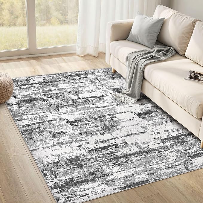 Area Rugs for Living Room: 4x6 Abstract Washable Rug Modern Neutral Large Soft Stain Resistant Non-Slip Backing Machine Table for Bedroom Dining Room Indoor Home Office Carpet - Black Grey