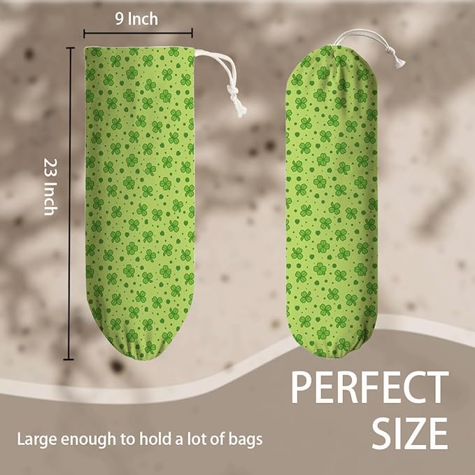 Reusable Grocery Bag Holder, Wall Mounted Organizer Dispenser, Washable Cotton-Linen Storage, St. Patrick’s Day Green Clover & Lucky Shamrock Design, Lucky Pattern for Kitchen Pantry or Cabinet