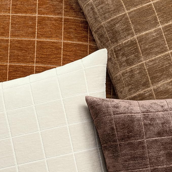 MIULEE Decorative Chenille Check Throw Pillow Covers Vintage Plaid Couch Pillows 18x18 Inch Set of 2 Neutral Boho Farmhouse Cushion Covers Modern Spring Home Decor for Sofa Bed Living Room Bronze