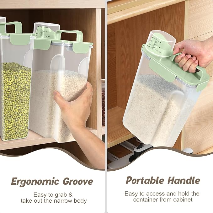 - CLEAR VISIBILITY & SPACE SAVING: The rice dispenser are designed with transparent bodies, so you can take a glance for convenient food management. The pantry storage containers with slim size is perfect for pantry organization