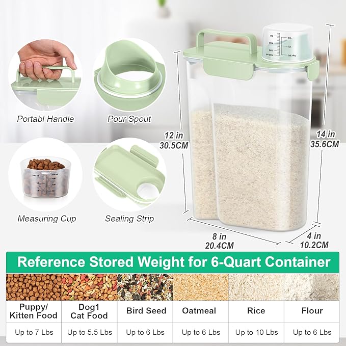 TBMax Airtight Rice Container 10 Lbs, Cereal Dispenser, Pet Cat Dog Food Storage Container, Plastic Kitchen Pantry Food Storage Holder with Cup -Light Green