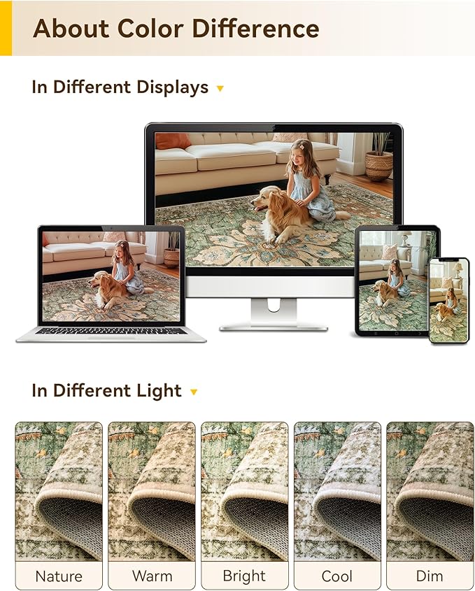 - About Crease: you may notice some folds on your rug upon receiving it. These are just from the way it was packaged during shipping. With regular use, the creases should naturally disappear within a few days. However, if you want to speed up the process, you can try folding the rug in the opposite direction or placing a heavy object on top of the creases to help flatten them out faster.