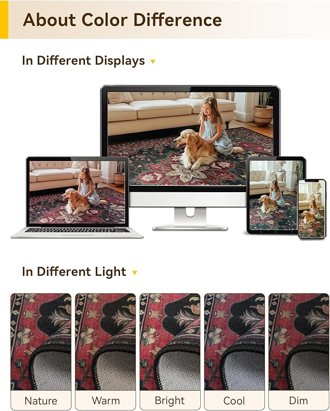 - About Crease: you may notice some folds on your rug upon receiving it. These are just from the way it was packaged during shipping. With regular use, the creases should naturally disappear within a few days. However, if you want to speed up the process, you can try folding the rug in the opposite direction or placing a heavy object on top of the creases to help flatten them out faster.