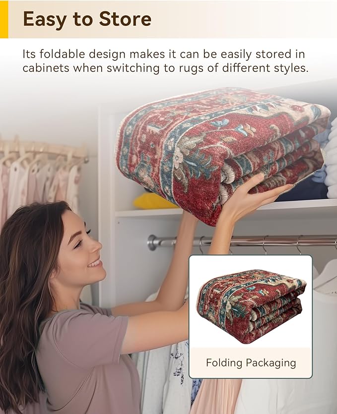 - Thin Design & Folding Packaging: this rugs with moderate thickness not only decor your home, soft on touch but also can be easily placed behind doors and under furniture. The sweeping robot can move around to clean the area rug. The thin design also makes it convenient for you to put the rugs into the washing machine for cleaning and easy to store.