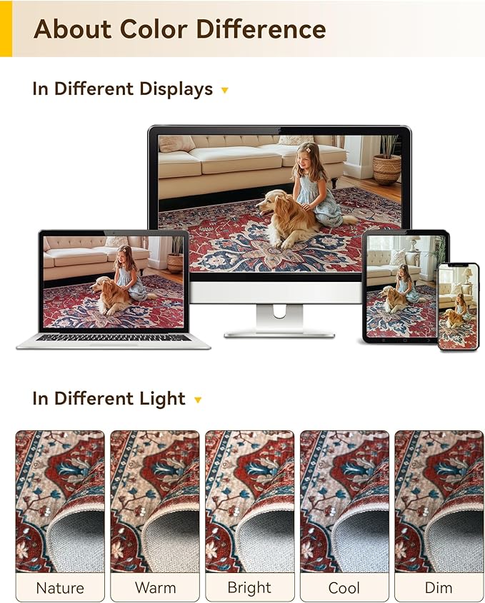 - About Crease: you may notice some folds on your rug upon receiving it. These are just from the way it was packaged during shipping. With regular use, the creases should naturally disappear within a few days. However, if you want to speed up the process, you can try folding the rug in the opposite direction or placing a heavy object on top of the creases to help flatten them out faster.