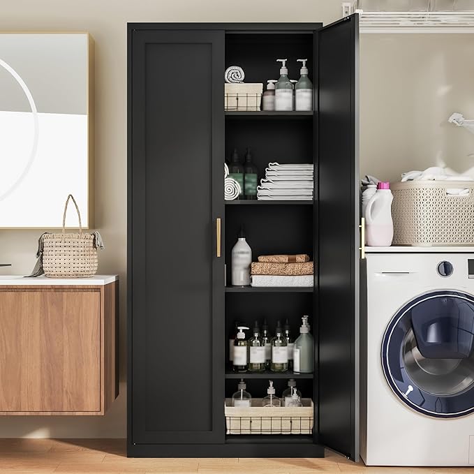 - 【Large Storage Space】The tall metal storage cabinet size is 71”H x 31.5”W x 15.8”D. Our tall kitchen cabinets have 5 spacious layers and 4 adjustable shelves. you can move up and down or remove as needed, creating flexible storage space.