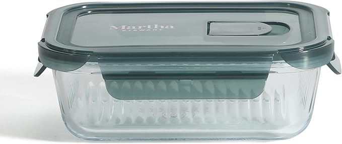 Martha Stewart Shadowbrook 5-Piece Borosilicate Glass Storage Container Set – Airtight Locking Lids, 21.6 oz Meal Prep, Leftover & Lunch Containers, Microwave, Oven & Dishwasher Safe