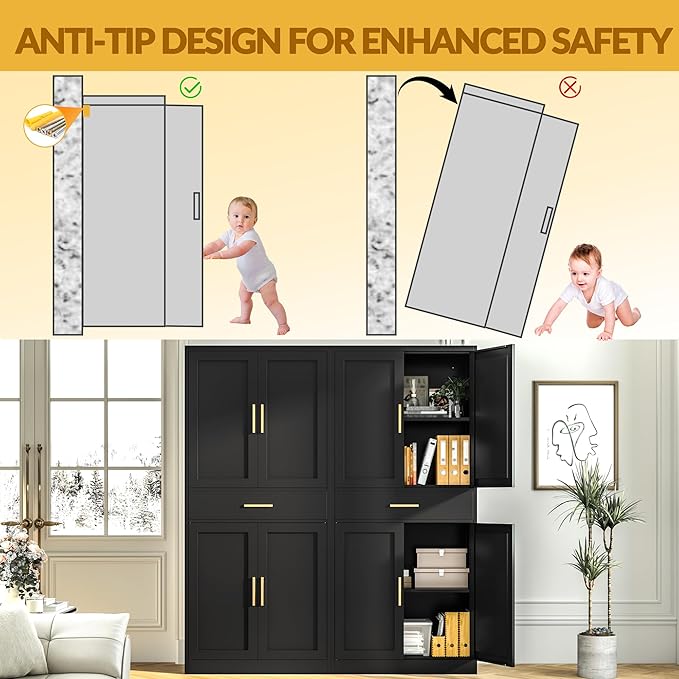 - 【Heavy Duty Metal Pantry Cabinet】Made of premium cold-rolled steel panels, this metal kitchen cabinet is sturdy. The surface is adopted with powder-coated technology, anti-rust and anti-scratch, anti-corrosion. Metal kitchen storage cabinet are sturdy, with easy to clean surfaces.